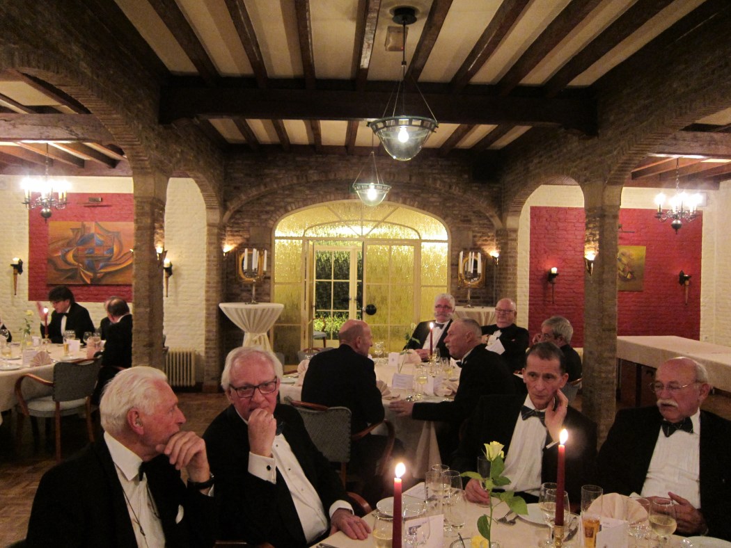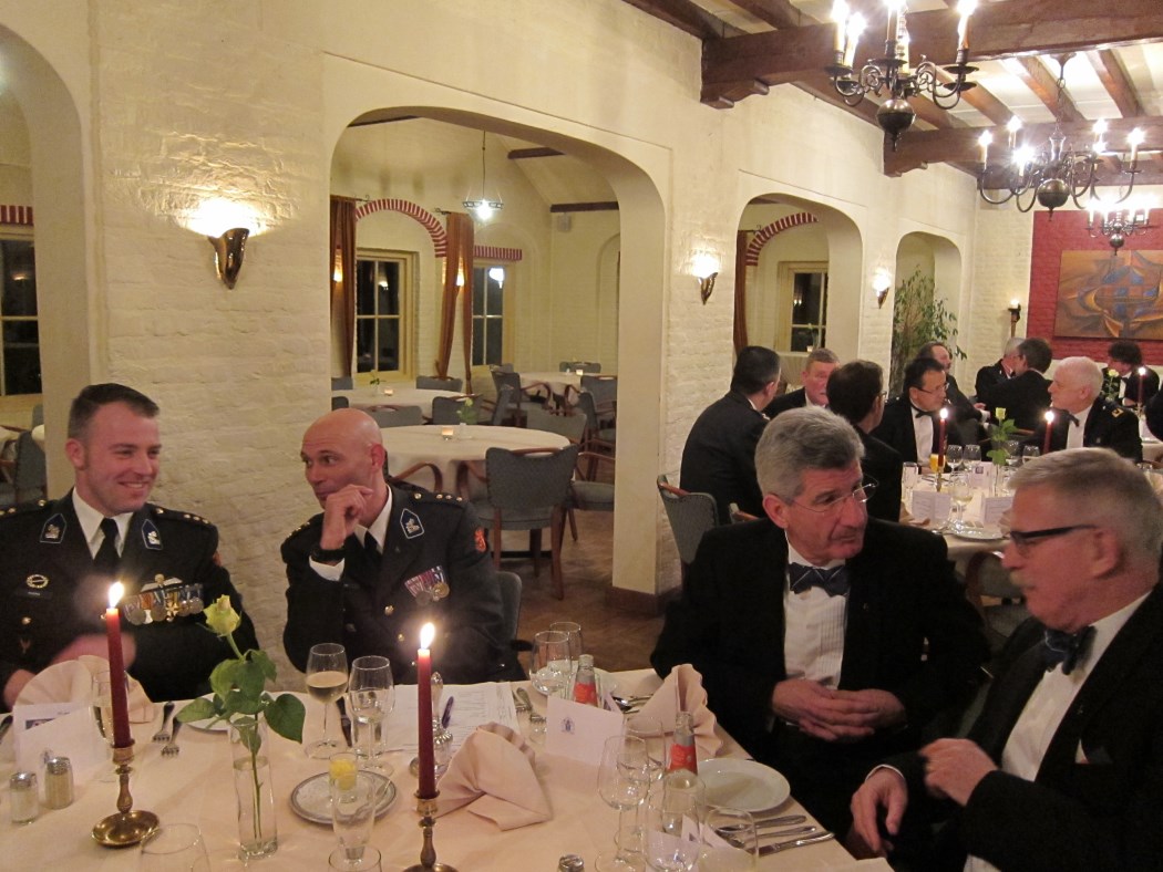 Vorig jaar moest ik verstek laten gaan, toen lag ik in het ziekenhuis wegens ernstig hartfalen. De route over Arnhem – Oss -Vught en Tilburg is een goede keus op deze vrijdagavond met een recordlengte aan files. Net wanneer ik binnen ben en regimentscommandant Kees Koek de hand heb geschud staan de wapenbroeders gereed om aan tafel te gaan. Mijn tafelgenoten kom ik regelmatig tegen bij maandelijkse lunches. De zaal is sfeervol, het restaurant is bekend bij hen die op de KMA hebben gezeten. De regimentsritmeester Rob Franse is vanavond de tafelpresident. Na een moment stilte geeft hij het woord aan Kees Koek. Die meldt meteen dat hij de reden is dat we hier zitten – midden in het land (en niet in Amersfoort of omgeving). Het corpsdiner van Alexander vindt vanavond ook plaats, wel in de buurt van Amersfoort. Daar vindt een wisseling van commandantschap plaats. Kees vraagt ons te gaan staan voor een dronk op Zijne Majesteit de Koning.