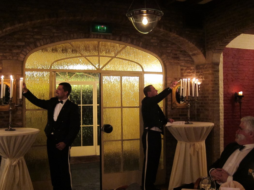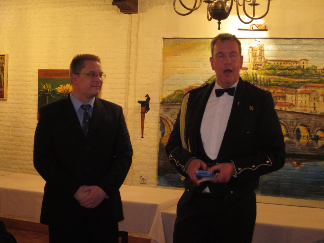 Cas geeft namens zijn tafelgenoten (waar ik ook toe behoor) nog advies over twee zaken. Ten eerste over de kaarsenceremonie en dan nog over de herdenking van hen die in het afgelopen jaar zijn overleden. Tenslotte zegt hij dank voor het voortreffelijk diner en dankt de tafelpresident voor diens leiding. Kees Koek sluit af. Hij bedankt het regimentsteam voor de organisatie. Het bestuur van de Stichting regiment Huzaren van Sytzama krijgt een royaal applaus. Kees dankt de aanwezigen voor hun komst, hoopt dat er volgend jaar meer aanwezigen zullen zijn in of in de buurt van Amersfoort of elders in het land. ‘Leeuwarden, Leeuwarden’, wordt er geroepen.