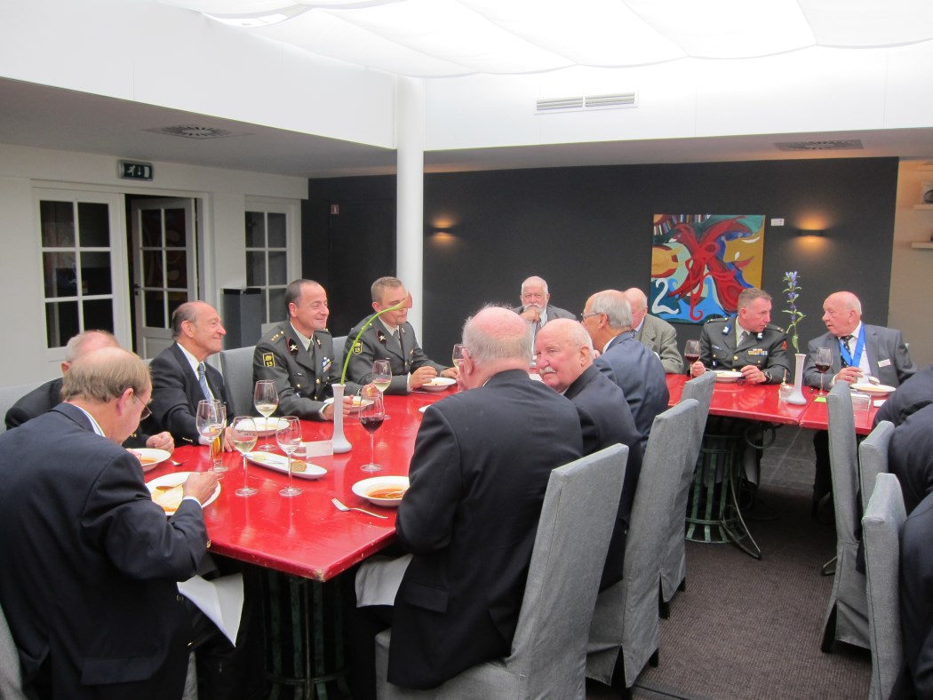 te geven voor de jubileumlunch van de Zutphense lunchtafel ter gelegenheid van hun 75jarig bestaan. Deze lunch zal op 16 okt. a.s. plaatsvinden in Zutphen. Het wordt de event of het jaar. Tenslotte zijn er enkele huishoudelijke mededelingen voor deze lunch. De volgende lunch zal worden voorgezeten door Eric Puik. Dat zal een Poolse lunch zijn en de Poolse militaire attaché heeft toegezegd aanwezig te zullen zijn. De Kerstlunch is op 23 dec. a.s. Het is kwart voor drie als de haastigen zich naar de kassa begeven, velen blijven nog even en drinken nog een kop koffie of een andere versnapering.